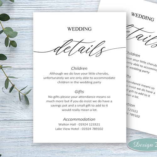 Buy Wedding Information Cards Guest Info Enclosure Card Wedding Online In India Etsy